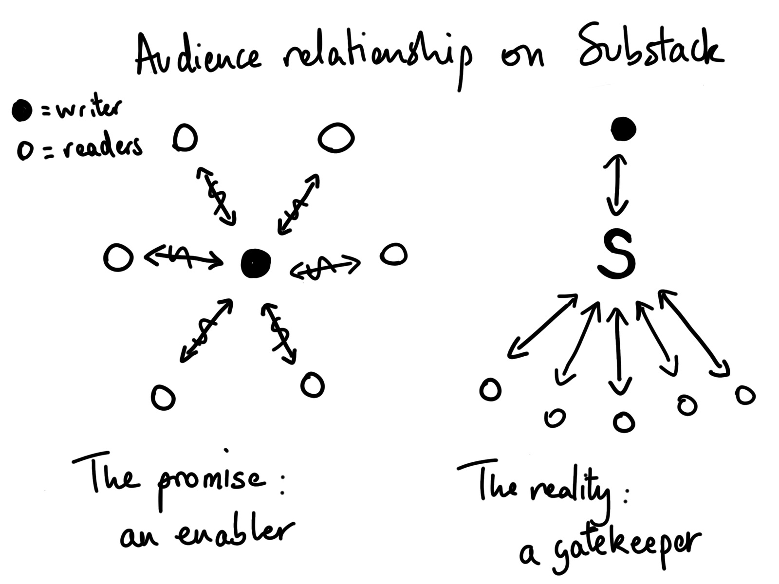 Substack pretends to be the CMS that powers the new independent media era, when it’s really a platform of the old scale era. The second you look at Substack as social media, it starts to look a whole lot better. I’m even ready to argue that as social platforms go, Substack is one of the better ones for creators in a field that is notoriously exploitative. It’s easy to use out of the box (sort of). It enables fast growth (that’s at least half real). It provides transparent(ish) monetisation. It lets you (mostly) own your audience list. It doesn’t cost you a thing until you earn something (then it takes quite a bit of it). That’s why I see little harm in larger publishers such as New York Magazine trying out Substack as part of a broader social portfolio or creators using it as a process blog, without intending to make it their main income.